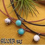 シルバー 925 銀製品 銀 トップ と レザー チョーカー 革 ネックレス レディース ペンダント 天然石 ターコ t053
