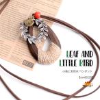 ネックレス レディース ロング シンプル ペンダント 金属アレルギー レザー 木製 木 レトロ 大きめ 革紐 小鳥 鳥 葉っぱ