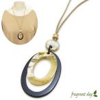 ネックレス レディース 天然素材 オーバル レザー 水牛の角 ナチュラル ネイビー ペンダント KN48023-B