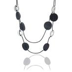 【並行輸入品】ファッション ブラックレザーペンダント ダブルレイヤー ロングチェーンネックレス レディース ジュエリー トレンディ COOSTU