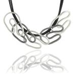 【並行輸入品】シルバー グレー ペンダント チョーカー ネックレス レディース ジュエリー トレンディ ブラックレザー