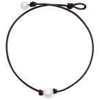 【並行輸入品】ZJ Design パールチョーカーネックレス シングルパールレザーペンダントネックレス レディース ホワイトパールジュエリー ハ