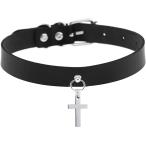 【並行輸入品】Tosmifairy ブラックゴシックカラーネックレス フェイクレザーチョーカー クロスムーンペンダント ゴスジュエリー レディース テ