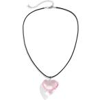 【並行輸入品】Caiyao ビッグガラス レッドハートペンダント レザーロープネックレス レディース チャンキーパフハートチョーカーネックレス 調節可