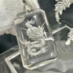 水晶 龍彫り ペンダントトップ 銀龍 銀彫り 龍 天然石 パワーストーン 良質 水晶 裏彫り メンズ レディース