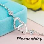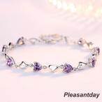 ブレスレット レディース ダブルハート 2粒 2色 白 紫プラチナ仕上げ シルバー925 母の日ギフト 彼女 妻 女性