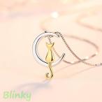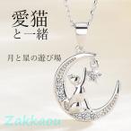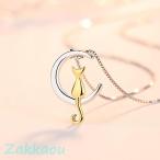 ネックレス レディース 猫ペンダント 月の上の猫 シルバー925 プラチナ仕上げ 女性 彼女 嫁 娘 誕生日プレゼント ジュエリー 記念日