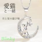 ネックレス レディース 猫ペンダント 遊び猫 星月 可愛い プラチナ仕上げ シルバー925 女性 嫁 妻 娘 誕生日プレゼント ジュエリー