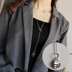 ネックレス ペンダント レディース アクセサリー ループ チェーン リング ロング プレート 凹凸 楕円 シルバー925 クール おしゃれ お出かけ