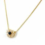 サファイア デザインネックレス YG イエローゴールド ペンダント メレダイヤ ネックレス K18 750 サファイア レディース 中古
