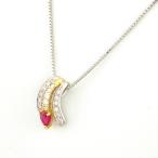 ルビー デザインネックレス YG イエローゴールド プラチナ ペンダント メレダイヤ ダイヤモンド ネックレス K18 Pt850 ルビー レディース 中古
