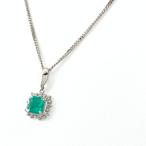エメラルド デザインネックレス プラチナ ペンダント メレダイヤ ネックレス Pt900 Pt850 エメラルド レディース 中古