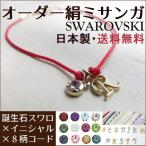 シルク コード ブレスレット 日本製 選べる1152種 スワロフスキー 絹100% イニシャル 誕生石 コードブレス ミサンガ レディース 送料無料 プレゼント オーダー