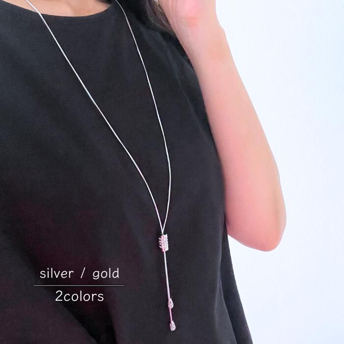 ネックレス ロング アクセサリー レディース ラリエット 女性 婦人 チェーン ラインストーン 長い 華奢 細め 長さ調節 シンプル 上品 おしゃれ