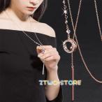 ロングネックレス レディース リング ラリエット 調節可能 キラキラ ステンレス チェーン 女性 母の日プレゼント 誕生日お祝い ギフト