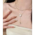 ネックレス 2連 フラワー パール ラリエット ネックレス レディース