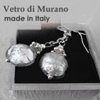 ピアス イタリア製ベネチアンガラス 揺れる ロングピアス 925シルバーフォイル レディースアクセサリー レンティ パステルグレー