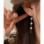 ピアス 「float」リボン×パール ロング ピアス レディース