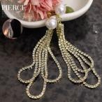 ロングピアス レディース 3連ラインストーンチェーン 一粒パール おしゃれ レディース アクセサリー ゴールド 左右セット 両耳用