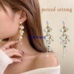 ピアス ロングピアス アクセサリー レディース 女性 婦人 チェーンピアス ジュエリー 花 フラワー パール風 ラインストーン かわいい 上品 女性ら