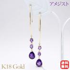 アメジスト ピアス 3連 揺れる フックピアス k18 18k 18金 イエローゴールド ロングピアス 送料無料 シンプル 普段使い 8月誕生石 レディース プレゼント pu