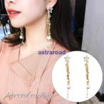 ピアス アメリカンピアス チェーン レディース アクセサリー 上品 揺れる ぶら下がり ロング フェイクパール ラインストーン クリスタル 水晶風 ベ