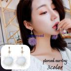 スタッドピアス レディース 女性用 アクセサリー ロングピアス ボンボン ポンポン フェイクファー ふわふわ もこもこ 揺れる ゆらゆら ラインストー