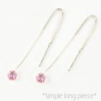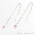 ロングピアス レディース プラチナ ピンクトルマリン アメリカンピアス 10月揺れる 地金ピアス シンプル 一粒 ジュエル 3mm クリスマス