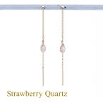 ピアス K10 YG ストロベリークォーツ クオーツ アメリカンピアス チェーンピアス ロングピアス 10K 10金 妻 彼女 レディース ギフト 誕生日プレゼント