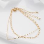 2本セット ブレスレット レディース 日本製 ニッケルフリー チェーン 華奢 細い 二連 重ねづけ パール ドレスに合う シンプル お肌に優しい 爆買