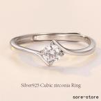 指輪 レディース 婚約指輪 Vライン 一粒 上品 エレガント 重ね付け サイズフリー シルバー925 プラチナ仕上げ 記念日 母の日ギフト