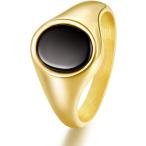 【並行輸入品】TRUMIUM 18Kゴールドメッキ シグネットリング メンズ レディース ブラックオニキスインレー シルバーゴールド 結婚指輪 軽量