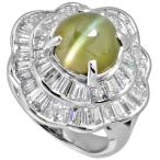 クリソベリルキャッツアイ デザインリング プラチナ 指輪 メレダイヤ リング 14号 Pt900 クリソベリルキャッツアイ ダイヤモンド レディース 中古