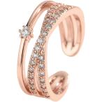 ジルコニア リング 指輪 レディース オープンリング クロス 2連風 フリーサイズ サージカルステンレス (ピンクゴールド, 調整可能)