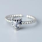 指輪 リング レディース シルバー スカル 王冠 スカル王 骸骨 髑髏 サイズ調整可 ガイコツ ドクロ アクセサリー