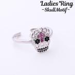 レディースリング 指輪 ラインストーン スカル ドクロ アクセサリー キラキラ ガイコツ 骸骨 がい骨 髑髏 おしゃれ 可愛い かわいい 女性用 婦人