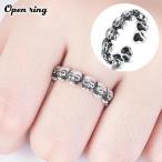 指輪 オープンリング アクセサリー スカル レディース 女性 婦人用 ファッションリング おしゃれ シルバーカラー ビンテージ加工 サイズ調整可能 ど