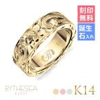 ハワイアンジュエリー オーダーメイド ゴールドリング 刻印無料 誕生石入れ可(有料) 指輪 K14 14金 幅約5.5mm 4号〜29号 大きいサイズ 受注生産 ヴァージンリング BY THE SEA バイザシー リング | メンズ レディース 誕生日 プレゼント 【品番:GSR202】