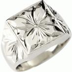 プラチナ 印台 リング ハワイアンジュエリー 指輪 レディース pt900 太め 幅広 ピンキーリング 婚約指輪 プルメリア 花 マイレ 葉 ハワイ 地金 人気 送料無料