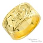 ハワイアンジュエリー イエローゴールドリング 幅広 指輪 ハワイアンリング 地金リング マイレ スクロール レディース ストレート 送料無料 セール 爆買