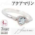 アクアマリン リング シルバー925 レディース メンズ 4mm 指輪 ハートシェイプ 脇石 ダイヤモンド ミル打ち風 3月 誕生石 刻印 可能 名入れ リング シンプル 男