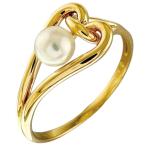 ハート リング 指輪 15号 18金 K18イエローゴールド アコヤパール レディース 中古 美品