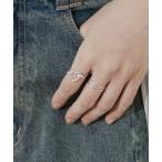 指輪 ファッションリング オープンリング レディース アクセサリー ビジュー ラインストーン キラキラ ハート 華奢 2連風 重ね付け風 カジュアル