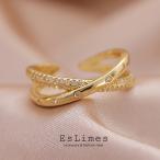 リング 指輪 レディース 18kgp 2連 X型 ゴールド ダイヤ フリーサイズ 激安アクセサリー 女性 友人 ギフト 人気 彼女 娘 嫁 新春セール ポイント利用