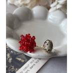 指輪 リング 「mallelabrocante/マルラブロカント」天然石とアンティークビーズフラワーのフォークリング/金属アレルギー対応 レディース