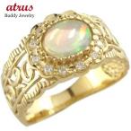 18金 リング ダイヤモンド オパール レディース 幅広 太め 透かし ゴールド 18k ピンキーリング 指輪 イエローゴールドk18 10月誕生石