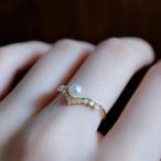 指輪 レディース/パールリング Vライン 繊細 大人可愛い ゴールド ピンキーリング 人気 女性 妻 彼女 ホワイトデーのお返し クリスマスプレゼント ポイント利用