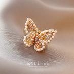指輪 レディース 蝶々 パール 大きめ ジルコニア CZ 個性 フリーサイズリング 18kgp アクセサリー おしゃれ カジュアル 女性 クリスマスプレゼント ポイント利用