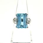 アクアマリン デザインリング プラチナ 指輪 メレダイヤ リング 11号 Pt900 アクアマリン ダイヤモンド レディース 中古
