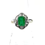 エメラルド デザインリング プラチナ メレダイヤ 指輪 リング 15号 Pt900 エメラルド ダイヤモンド レディース 中古